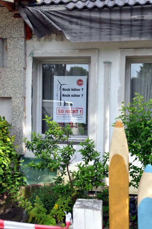Zeichen des Nicht-Einverstandenseins: In und um Ochsenwerder hängen schon bald 100 Protestplakate gegen Hamburgs unausgegorene Windkraftpläne.