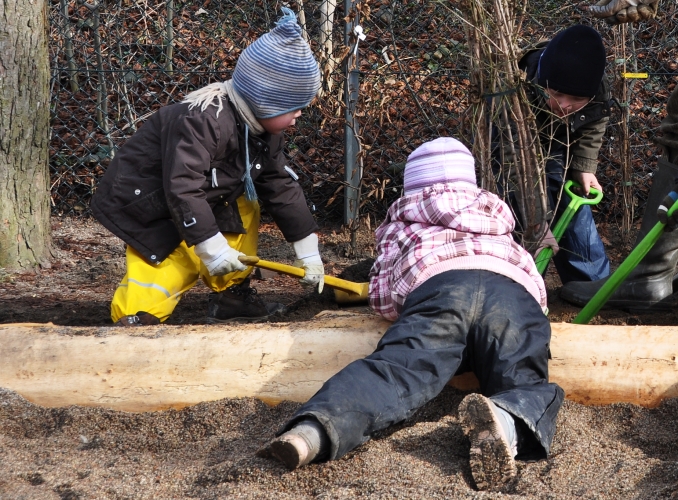 Bewegung wird ganz groß geschrieben. Da gibt es einen krippeneigenen Spielplatz und, für schlechtes Wetter, einen Kriechtunnel, einen Schwebebalken, eine Rutsche und dergleichen mehr im Gruppenraum. Spaziergänge mit dem Krippenwagen sind an der Tagesordnung, so oft das Wetter es zulässt, und einmal im Jahr machen die Kinder einen Ausflug gemeinsam mit Erzieherinnen und Eltern.