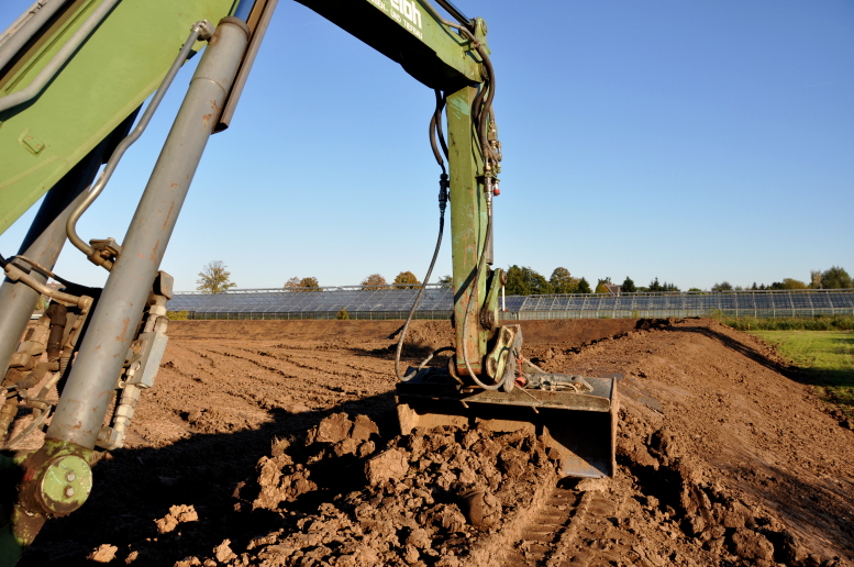 Die Vegetationsschicht, die ursprünglich die Wiese bedeckt hat, ist zurzeit zwischengelagert und soll ganz am Schluss der Maßnahme wieder an Ort und Stelle kommen