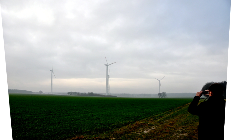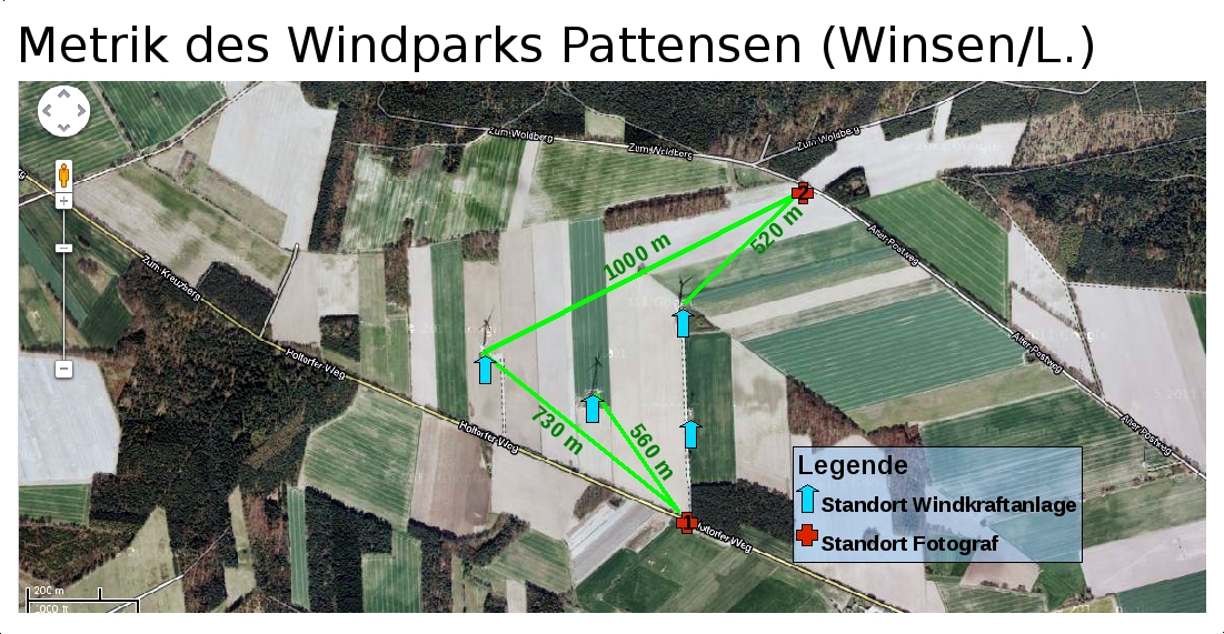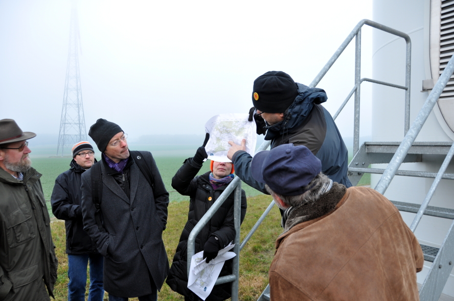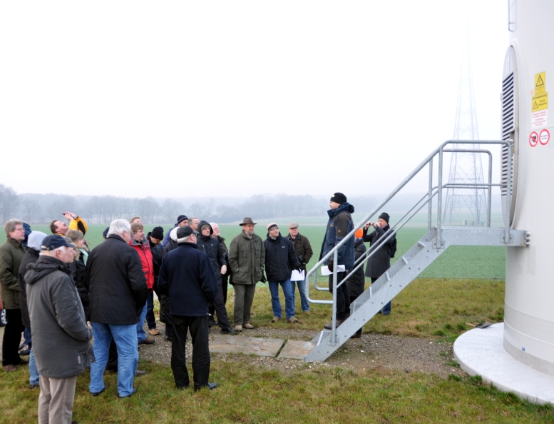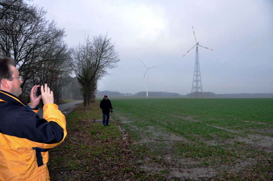 Die Teilnehmer waren Mitglieder der Bürgerinitiativen Ochsenwerder und Kiebitzdeich, Lokalpolitiker aller Fraktionen, Mitarbeiter der Bergedorfer Verwaltung und des Ingenieurbüros NET OHG in Bergedorf. Empfangen wurde die Gruppe vor Ort von Kati Domrös und Bernd Meyer vom Betreiberunternehmen des Pattenser Windparks, der Winenergie GmbH in Winsen/Luhe. Dieser Windpark eigne sich gut zur Anschauung, sagte Jens Heidorn von der NET OHG, weil hier exakt die Windkraftanlagen (WKA) stehen, die auch in den Vier- und Marschlanden aufgebaut werden sollen: Die Repower MM92 mit einem schlanken, 100 Meter hohen Stahlrohrmast, 92 Metern Rotordurchmesser und einer Leistung von rund 2 Megawatt. Bei dieser Ortsbegehung zeigte sich ein bemerkenswertes optisches Phänomen: Es war dem menschlichen Auge relativ egal, ob die WKA 500 oder 1000 Meter entfernt stand unabhängig von der Entfernung wirkten sie in diesem Gelände annähernd gleich groß. Die Skepsis der Gegner konnte das allerdings nicht beseitigen. So geht die Diskussion