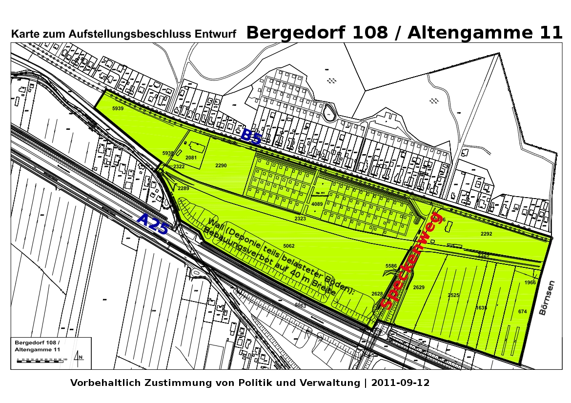 Vorgestern fand die Öffentliche Plandiskussion zum gewünschten B-Plangebiet »Bergedorf 108 | Altengamme 11«. Laut Klaus Wittmann, Abteilungsleiter Bebauungsplanung im Fachamt Stadt- und Landschaftsplanung Bergedorf, besteht im Bezirk ein Bedarf für ca. 300 Laubengrundstücke. Möglicherweise ist diese Zahl zu tief gegriffen, denn vereinzelten Schätzungen zufolge gibt es allein in den Vier- und Marschlanden bis zu 1000 so genannte »nicht genehmigte, nicht genehmigungsfähige« Lauben, die bis 2018 rückgebaut werden und für die Ersatzflächen gefunden werden sollen.