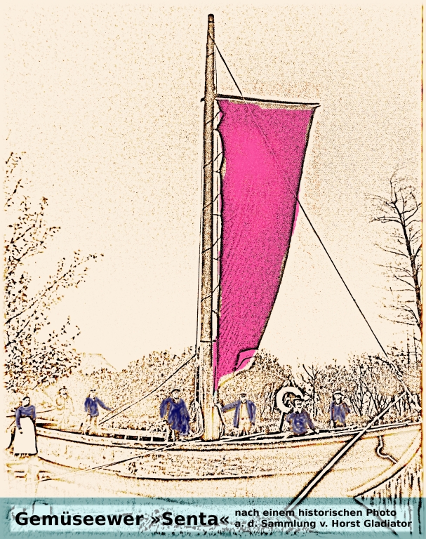 Bevor der Originalnachbau des Ewers im kommenden Jahr zu internationalen Gartenschau vom Stapel gelassen wird, hat Altengamme jetzt schon seinen Ewer - rund 90 Jahre, nachdem August Knop, der letzte Ewer-Schipper hier, sich zur Ruhe gesetzt hat. Der letzte Vierländer Ewer-Schipper war Tietje Albers am Curslacker Deich. Dessen Ewer, die »Senta«, hatte ein Fassungsvermögen von 42 Tonnen, was 8 - 10.000 Körben Erdbeeren entsprach. Sie hatte 1910 einen Motor erhalten und fuhr bis in die 1940er-Jahre (Gladiator 1988). Bis heute gehalten hat sich der Begriff »Schipper« für die Transportunternehmer, die heute auf Rädern unterwegs sind und außerhalb der Vier- und Marschlande als Spediteure bekannt sind.