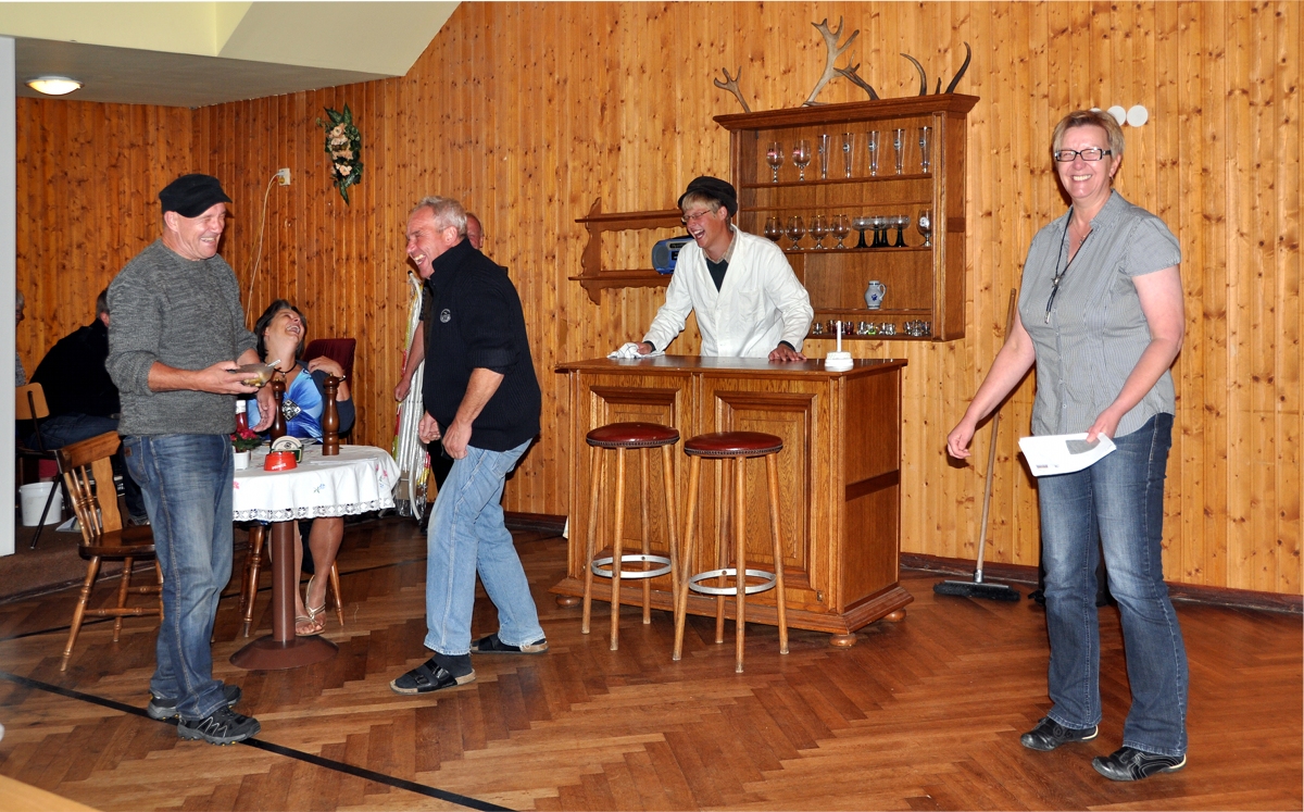 Bei der Probe für »Landeier« (Ende September 2012) fallen Regisseur Wolfgang Sommer und auch den Schauspielern (v.l.n.r. Andrea Wichmann, Carl Hermann Kröger, Hendrik Puttfarken und Heike Barnsdorf) noch so manche komische Ergänzungen für die Inszenierung ein. Verdeckt, aber genauso lachend Stefan Timm und Rolf Peters