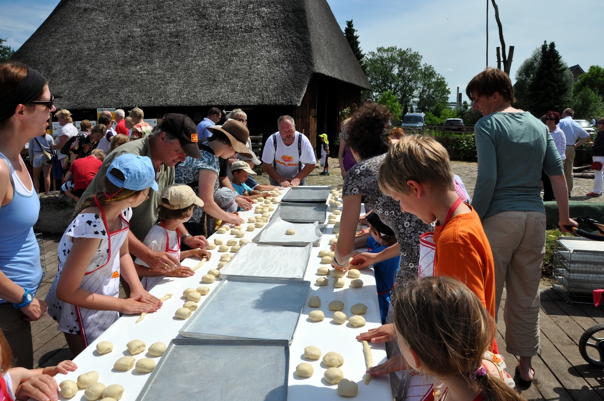 Großen Anteil am Gelingen des heute erstmalig stattgefundenen Kinderbacktages haben Erika Garbers und Manfred Lux getragen, die viel organisiert und kommuniziert haben, sowie Professor Hinrichsen als Direktor des Altonaer Museums und somit des Rieck-Hauses, der den Aufbau dieses Tags im Freilichtmuseum fachlich begleitet hat. Nicht nur einmal wurde die Frage gestellt, ob es nächstes Jahr in den Sommerferien wieder so eine tolle Mitmach-Ausstellung gibt. Erika Garbers lachte, dass sie das wohl gern wieder tun wird. Auch Dr. Lux freute sich sehr, hatte er doch schon im Vorfeld gesagt: »Wir wollen einmal zeigen, dass wir vom Freundeskreis auch sowas auf die Beine stellen können.«