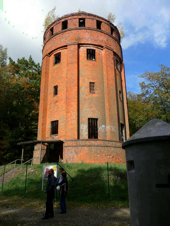 Der Historische Spaziergang führt über teilweise verschlungene Wege durch den Wald zum Krümmeler Wasserturm, einem Gebäude aus dem Kriegsjahr 1916. Das Gebäude zur Wasserversorgung einer Nitrozellulosefabrik ist eines der letzten Original-Bauwerke der ehemaligen Sprengstofffabrik.