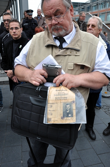 1933 nach Dresden verschleppt, musste der Schwiegervater dieses Teilnehmers bis Kriegsende für seinen Todfeind schuften. Seine »Arbeitskarte« spricht immer noch laut über dies Unrecht.