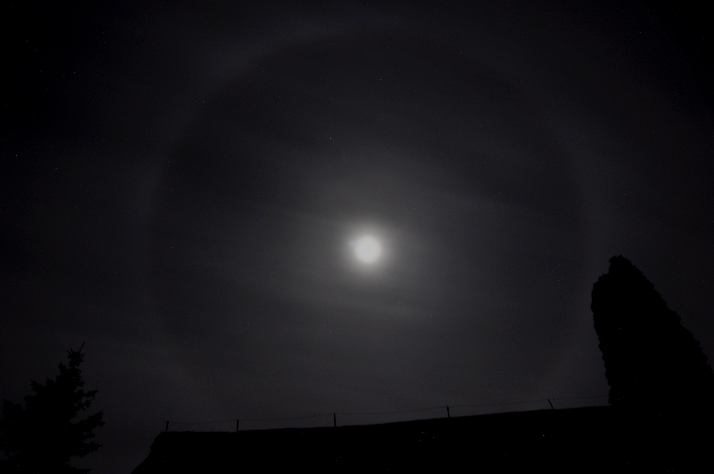 Der Vorteil im Flachland ist, dass neben Bäumen und Gebäuden nicht auch noch Berge die Sicht auf Himmelserscheinungen nehmen. Hier zwei Parhelien (Nebensonnen) an einem Frühsommerabend in Vierlanden.