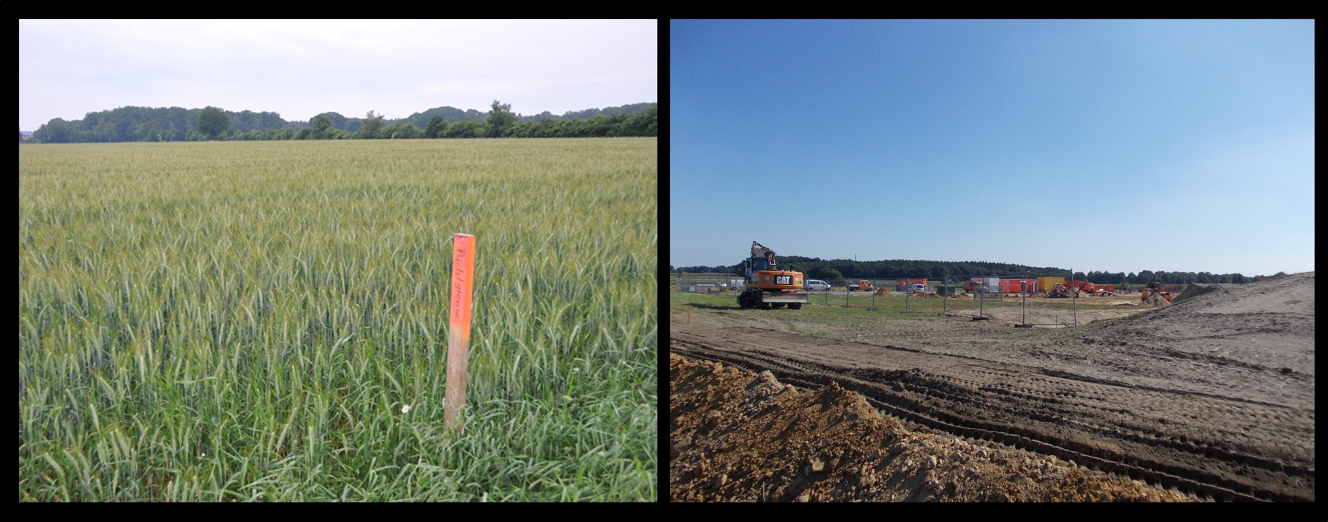 Geschrieben von Carin Schomann amDie Gerste durfte noch wachsen, dann wurde aus dem Acker eine Industrielandschaft: Bei Odeweg (Lk. Verden/Aller) im Juli 2013 und sechs Wochen später.