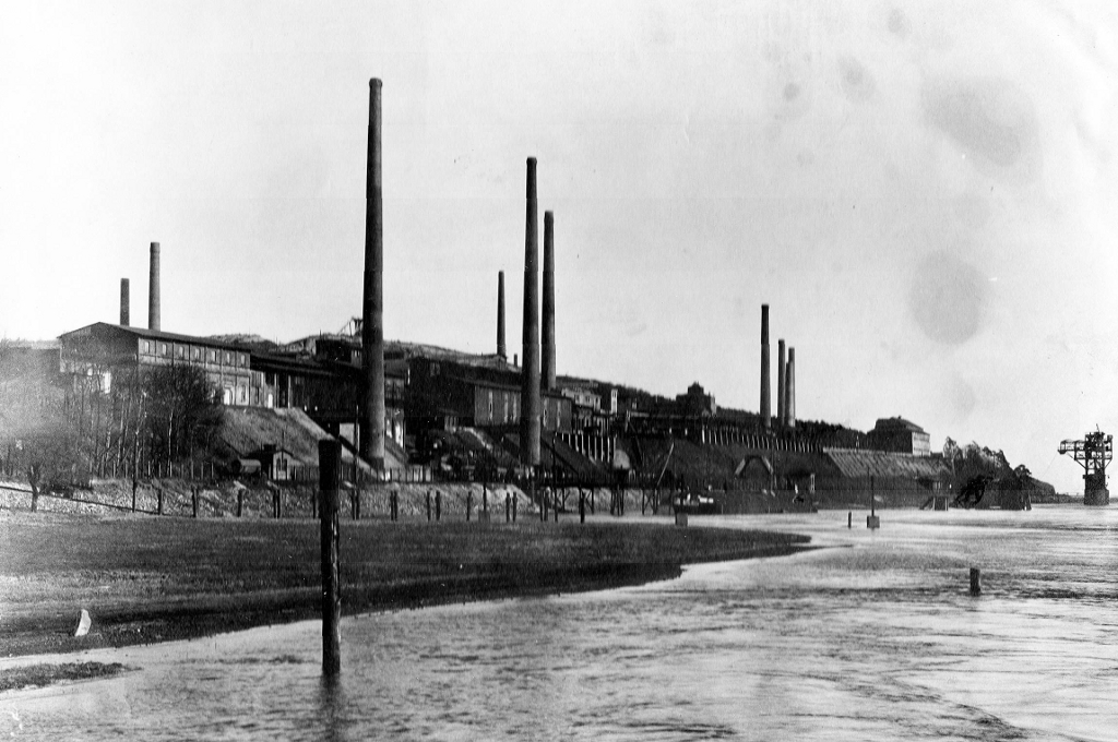 Krümmeler Elbufer: Am rechten Bildrand ist die Fabrik zur Schwefelkiesförderung zu erkennen. (Foto von 1925: Förderkreis Industriemuseum Geesthacht e. V.)