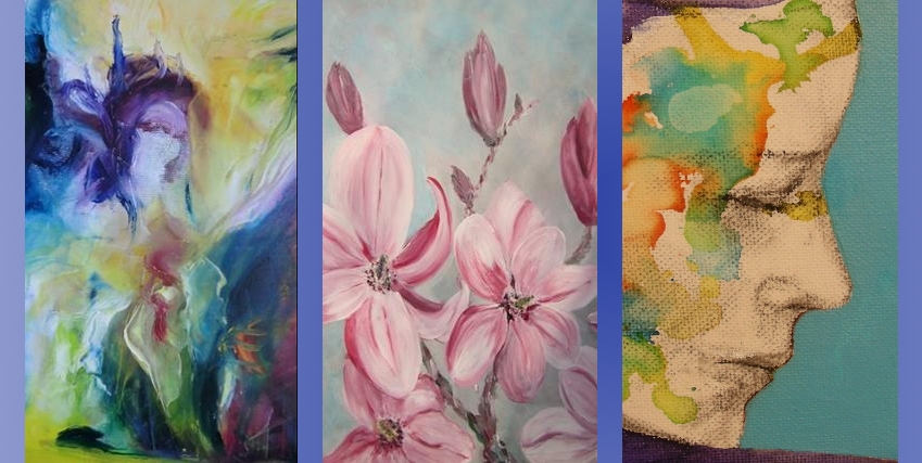3 Künstlerinnen, deren Malweise nicht unterschiedlicher sein kann. Diese gemeinsame Ausstellung spielt bewusst mit den Gegensätzen der Stilrichtungen und Techniken. Naturverbundenheit inspiriert Sabine Stelling zu floralen und landschaftlichen Motiven, mit intensiver Farbgebung und kraftvollem Ausdruck. Die Bilder von Dorothea Vadersen sind überwiegend nonfigurativ, mit weicher Pinselführung und starken Farben. Auch einige ihrer ausgewählten Collagen in Mischtechnik sind zu sehen. Susanne Osterhus hat ihren Schwerpunkt in der Darstellung menschlicher Gesichter in verschiedenen Techniken, Materialmischungen sowie Stilrichtungen.