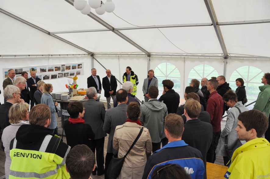 Mäßiger Wind trieb die 50-Meter-Rotorblätter an, die gemächlich den Generator in der Gondel in 100 Metern Höhe drehten und durch kein Geräusch den Festakt am Fuß von Windrad »Ronja« störten. Im Festzelt dankten Jens Heidorn und Klaus Soltau den Anwesenden, die alle auf ihre Weise am Gelingen des Repowering in Neuengamme mitgewirkt hatten. Senator Kerstan dankte Heidorn und Soltau, dieses Pionierprojekt erfolgreich umgesetzt zu haben. »Die Freie und Hansestadt Hamburg profitiert wie keine andere Stadt von der Windkraft«, sagte der Umweltsenator von Europas Windhauptstadt in spe, der just von einer Dänemark-Reise zurückgekehrt war, wo er Projekte der regenerativen Energieerzeugung und -speicherung angesehen hatte. »Aber die Energiewende bedeutet auch eine stärkere Dezentralisierung bei der Energieerzeugung. Dabei müssen wir die Menschen mitnehmen.« Während sich die Gäste am Büffet gütlich taten, machte sich der Senator auf den Weg nach oben.