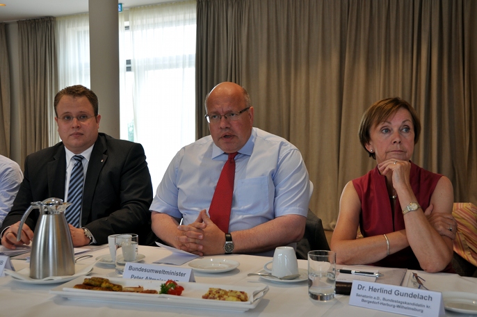»Beim Fracking auf die Bremse treten, nicht aufs Gas.« Mit dieser Formel fasste Bundesumweltminister Peter Altmaier seinen Standpunkt zum Fracking in Deutschland zusammen, als er heute auf seiner Wahlkampftour in Bergedorf Halt machte. Nachmittags waren ausgewählte Vertreter lokaler Bürgeriniativen gegen Fracking und gegen Windenergie-Repowering sowie der »Gemeinschaft Vier- und Marschlande« zum Gespräch mit dem Minister eingeladen, am Abend sttellte sich der Minister den Bürgerfragen bei seiner öffentlichen Diskussionsveranstaltung.